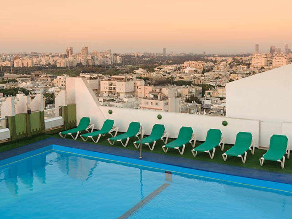 בריכת השחיה – (פתוחה מפסח עד סוכות) ממוקמת על גג המלון, בעלת נוף משגע החולש על חוף הים וכן על העיר ת"א כולה. משטח השיזוף הממוקם בבריכה אידיאלי לשיזוף ולרגיעה.