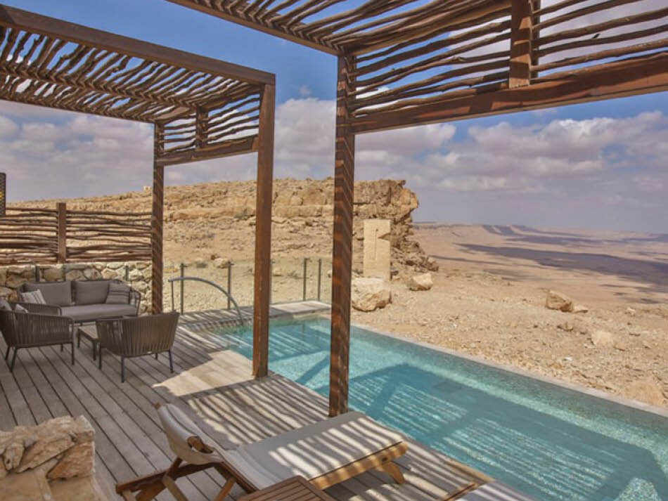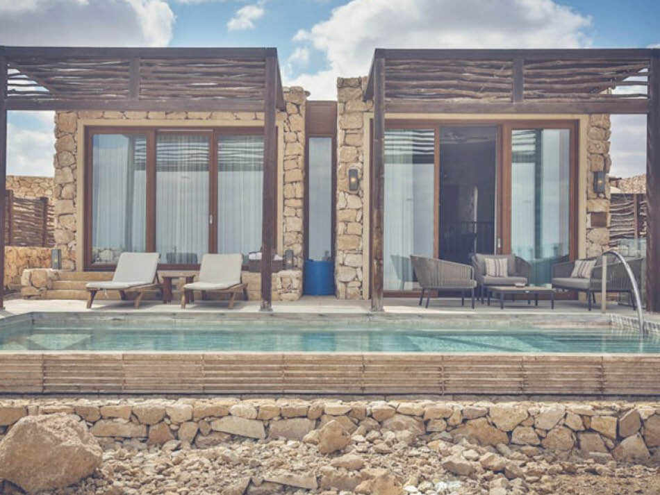 וילות ויחידות אירוח הצופות אל נוף המדבר, לחלקן בריכות אישיות