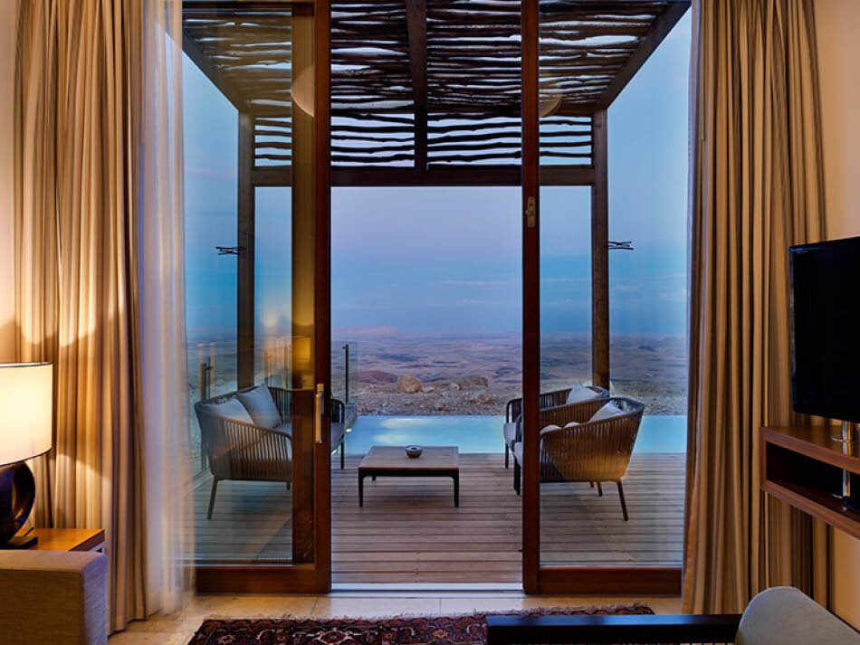 חופשה יוקרתית, שקטה ומנותקת בלב המדבר, על שפת מכתש רמון