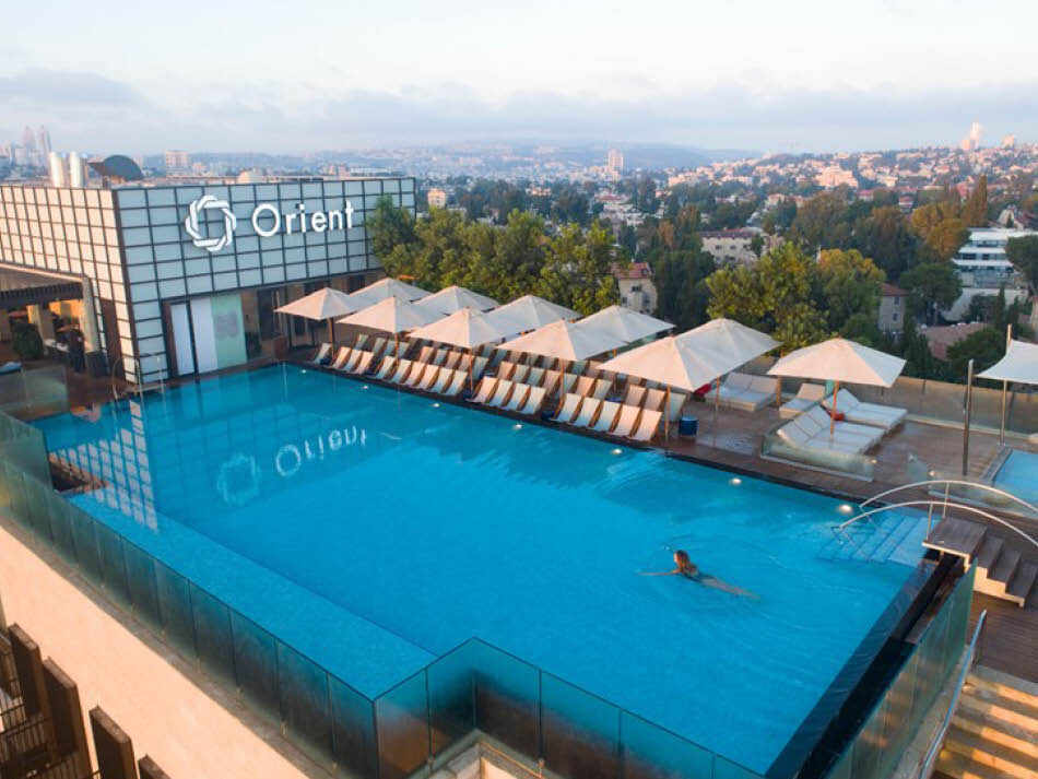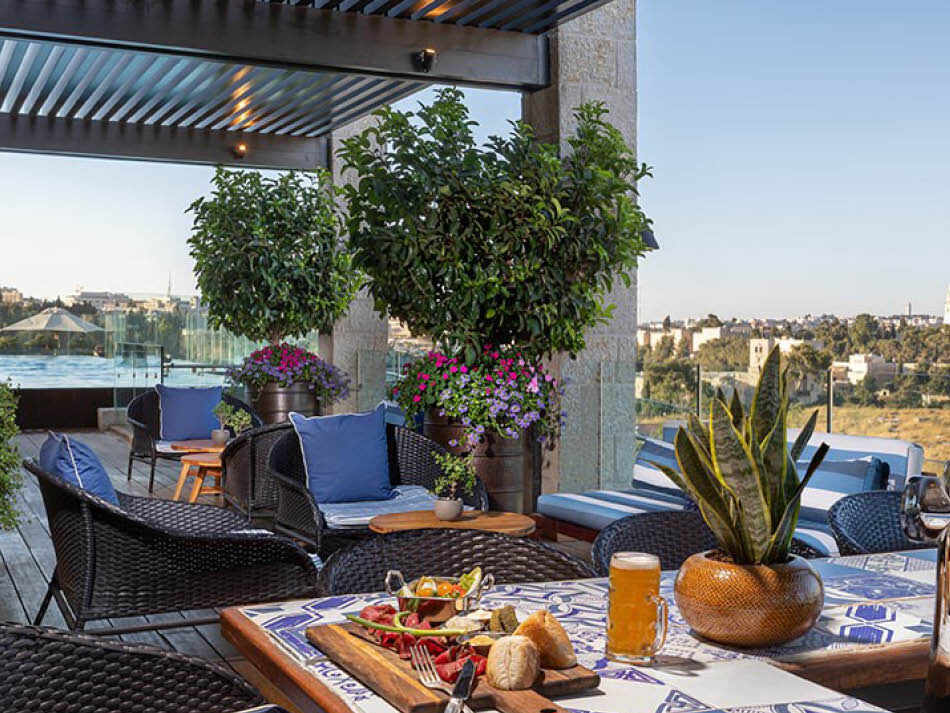 מלון בירושלים הכולל בריכה חיצונית עם בר מסעדה על גג המלון