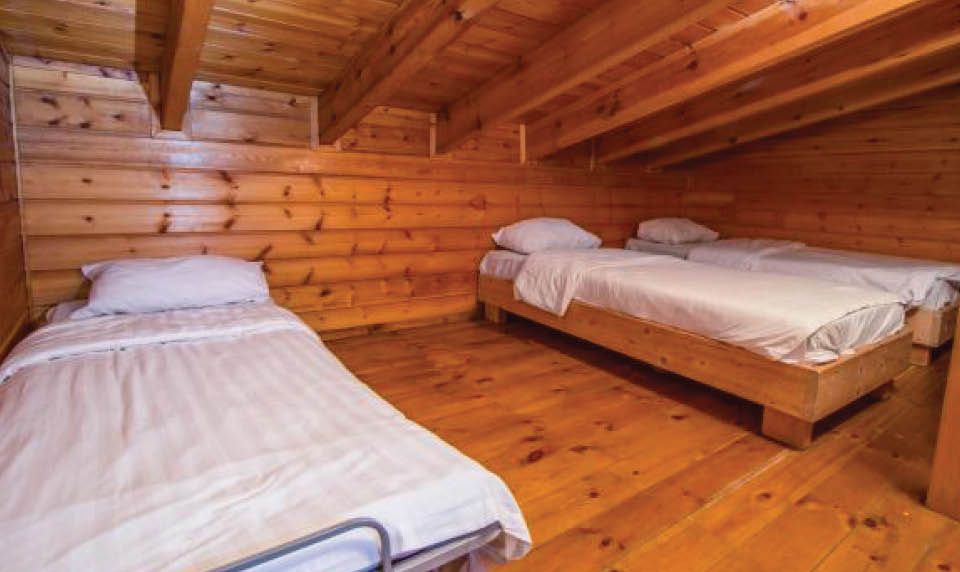 בכפר הנופש אוליב על הכנרת ישנן 13 בקתות עץ. בכל בקתה מזגן, סלון מרווח, טלוויזיה, חדר שינה זוגי מופרד, שירותים ומקלחת, פינת אוכל ומטבחון מאובזר. בכל בקתה קומת גלריה עליונה המתאימה לשינה ובה מזרונים, קומת הגלריה מאפשרת לתמרן בין זמן איכות לכל המשפחה לבין פרטיות חלקית בין ההורים והילדים. לכל בקתה מרפסת עץ הפונה לכנרת ומוקפת שיחים ועצים. סביב הבקתות עומדות לרשות האורחים מדשאות רחבות ידיים ופינות מנגל. במתחם בריכה קטנה וחוף ים במרחק צעדים ספורים