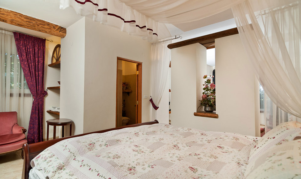 אלומה בכפר כוללת שלוש בקתות אירוח גלריה יפהפיות ושתי סוויטות יוקרתיות. לא בכדי נקראות שתי הסוויטות הסוויטה האנגלית והסוויטה הצרפתית. אכן ניתן להרגיש בהן ניחוחות אירופאים. מלבד הסוויטה הצרפתית פזורות כל הבקתות בין שבילי הכפר. בכל הבקתות ישנן פינות ישיבה נוחות ונעימות, שפע של פינוקים. כל אחת מהבקתות מעוצבת בטוב טעם עם פריטי אמנות, בדים רכים ואלמנטים שונים המשרים את האוירה המיוחדת בכל בקתה ובקתה. כאשר תיכנסו אל אחת הבקתות של אלומה בכפר תוכלו להרגיש מיד איך האווירה המיוחדת מתחילה לאט לאט לעטוף אתכם כמו שמיכה רכה וחמימה. כל הבקתות מעוצבות בטוב טעם. ניכר כי כל אחד מן הפרטים המרכיבים את הבקתות לא נמצא שם במקרה אלא הוא מהווה חלק חשוב ביצירת האוירה המיוחדת. לתשומת לב האורחים ארוחת הבוקר לא מוגשת במלון אלא במתחם ארומה שנמצא 5 דקות נסיעה מהמלון ואינה כשרה.