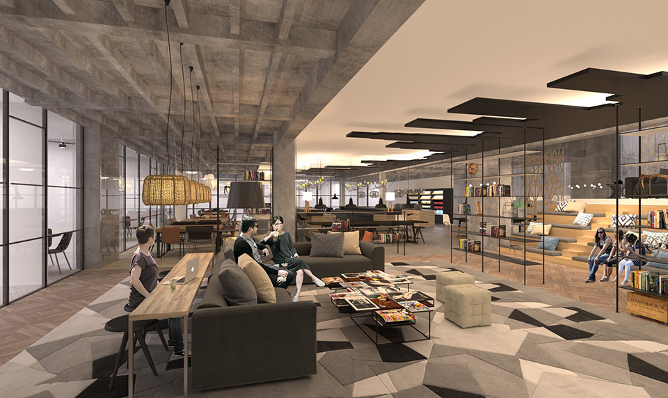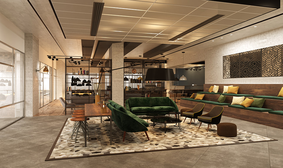 קומת ה-Hub מהווה את מוקד הפעילות המרכזי של המלון, הכולל חלל עבודה משותף בו ניתן לעבוד, לשחק, להכיר, לאכול, לשתות וגם ליהנות מהאווירה הנעימה. בקומה זו ממוקמים מטבח ובר שפתוחים עד מאוחר, חדרי עבודה פרטיים בגדלים שונים, שולחן ביליארד, ומשחקי לוח ווידאו.