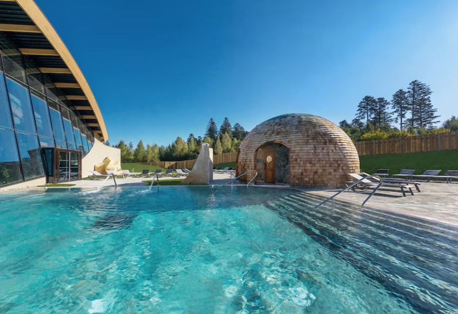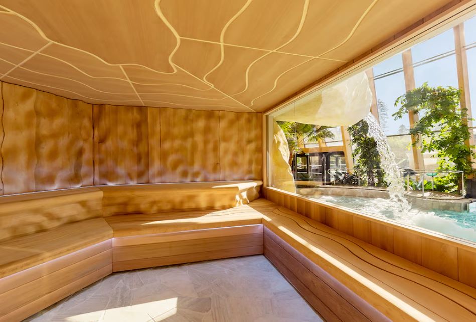 פארק המים המקורה מזמין לגלים, נהרות זורמים ושבע מגלשות, כולל מגלשה ארוכה במיוחד והכול מחומם ופועל כל השנה.